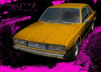 Fiat 130 Coupé in cyan & gold