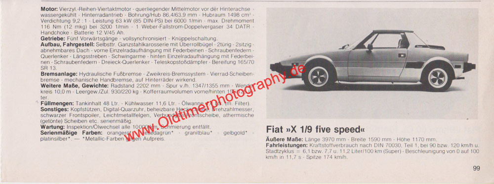 28. Januar 2026 1000 × 374 Original Fiat X 1/9 Five Speed Datenblatt – Fiat Werbung aus Auto Modelle Katalog von 1980
