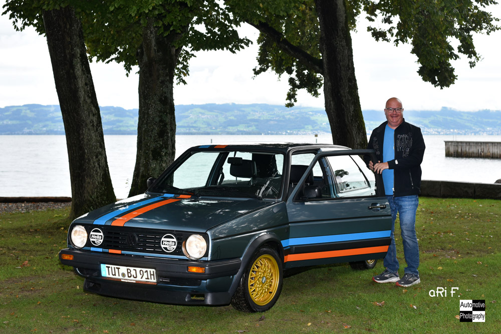 Ein gut gelaunter VW Golf 2-Besitzer bei der Kressbronn Classics 2025