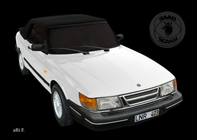 Saab 900 Cabrio in black & white 01