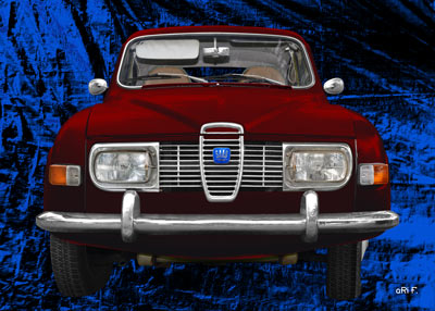 Saab 96 in blue & darkred